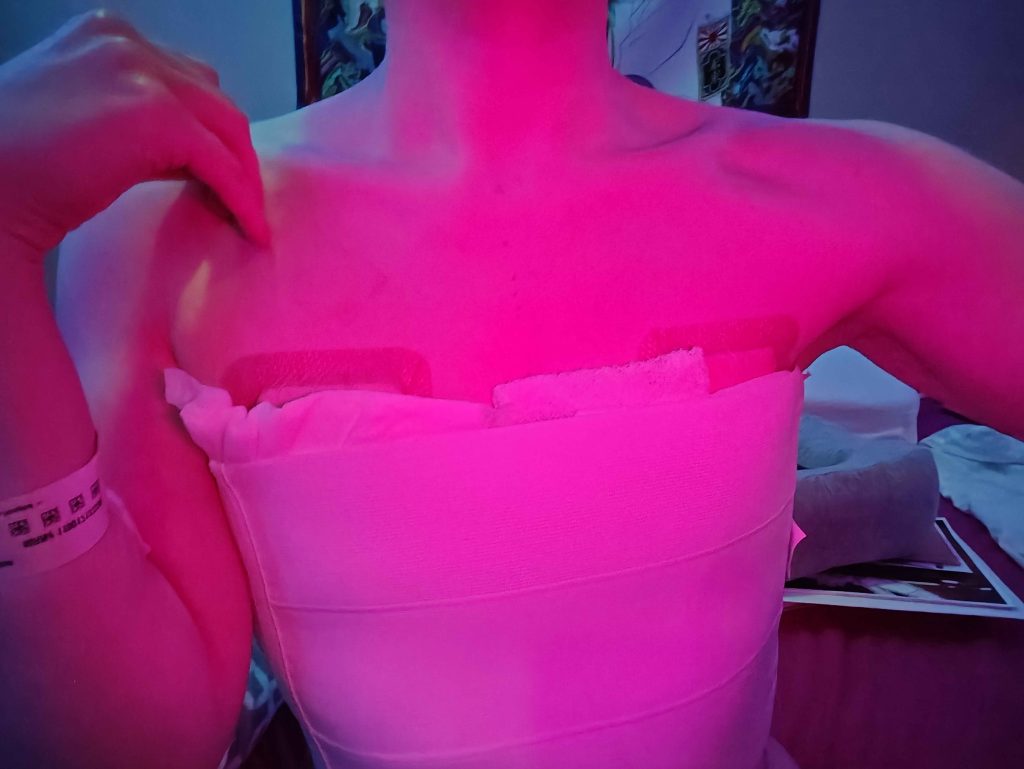 I will be strapped into this agonizing apparatus for over a month, unable to draw a full breath, unable to scratch my Trianon wounds…but as always, I put my money where my mouth is!